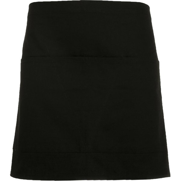 Delantal corto de sarga.· Cintas laterales para lazada al tono.· Dos bolsillos frontales.