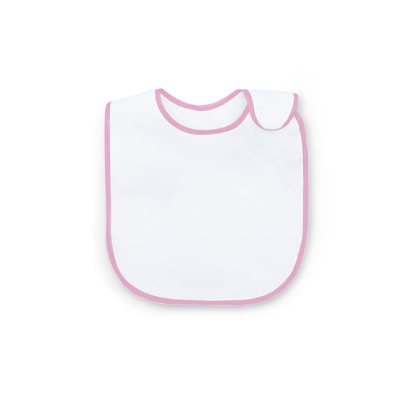 Babero viveado. Tejido de algodón por la parte delantera y de plástico por la parte posterior para evitar el traspaso de líquidos. Cierre lateral de velcro suave.