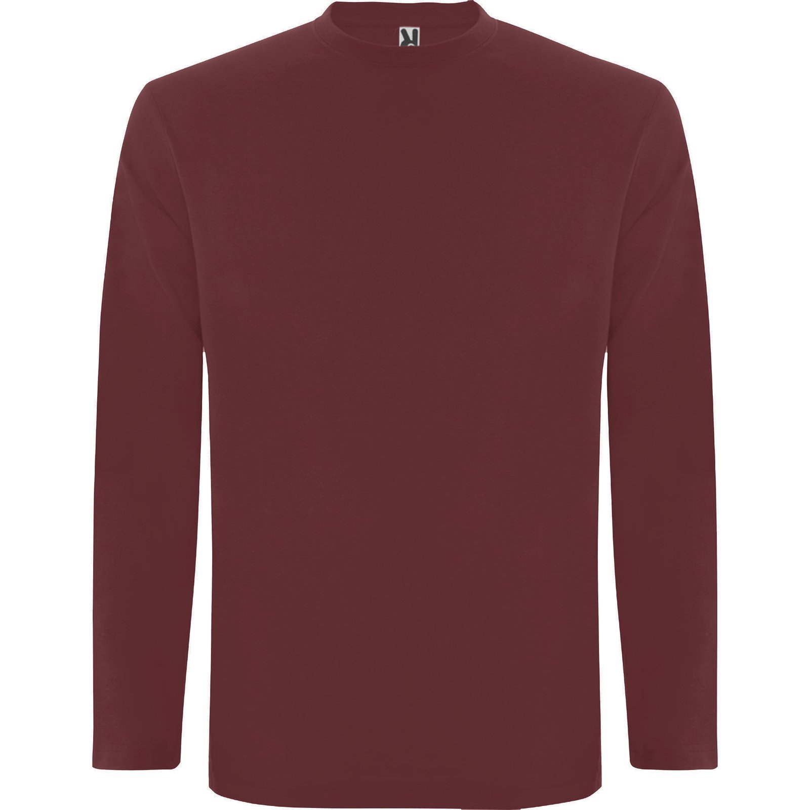 Camiseta de manga larga tubular en tallas de adulto y costuras laterales en tallas de niño. Cuello redondo en canalé 1×1 (4 capas). Cubrecosturas en cuello del mismo tejido.