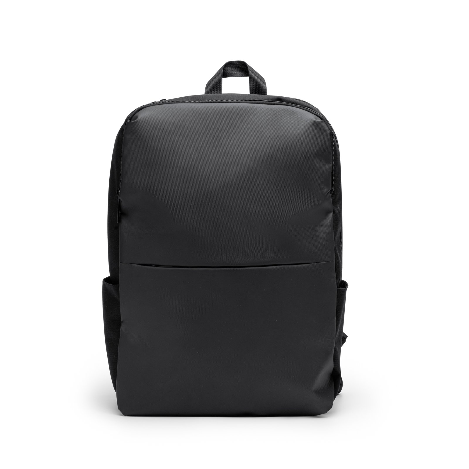 Mochila elaborada en PU Leather y políester reciclado RPET 600D con espalada y asas de hombro acolchadas generan un diseño ergonómico. Cuenta con un compartimento principal con bolsillo acolchado optimizado para transporte de ordenador portátil y dispositivos de hasta 15″. Cuenta con bolsillo frontal y cinta posterior para trolley.