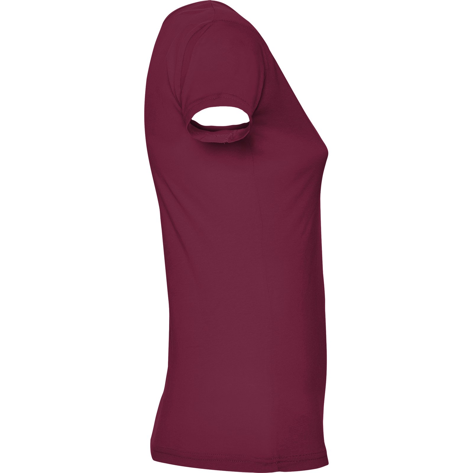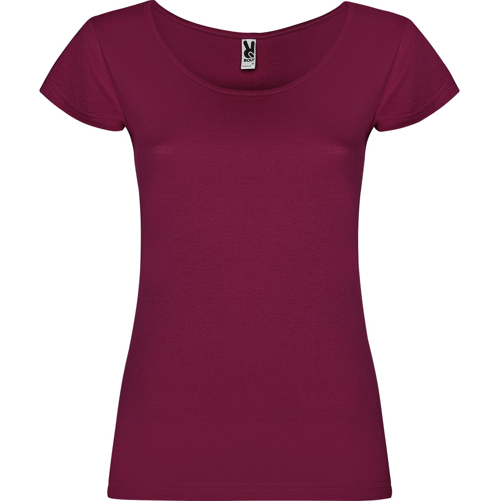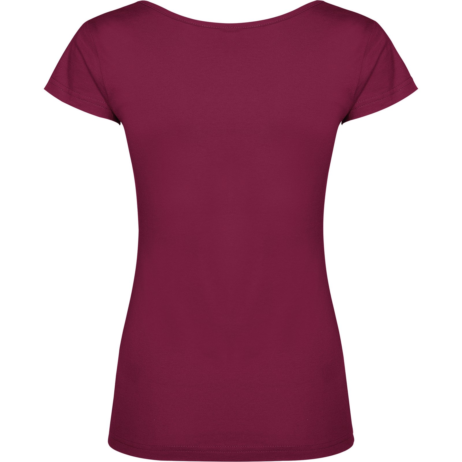 Camiseta de manga corta entallada en cintura. Cuello con amplio escote redondo con ribete al tono del mismo tejido.