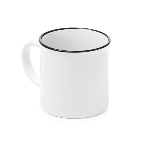 Taza de cerámica con diseño retro especial para sublimar con tu diseño favorito. Capacidad de 300 ml. Cuenta con el borde a color, lo que le confiere un aspecto más retro y un asa en blanco, a conjunto del cuerpo.
