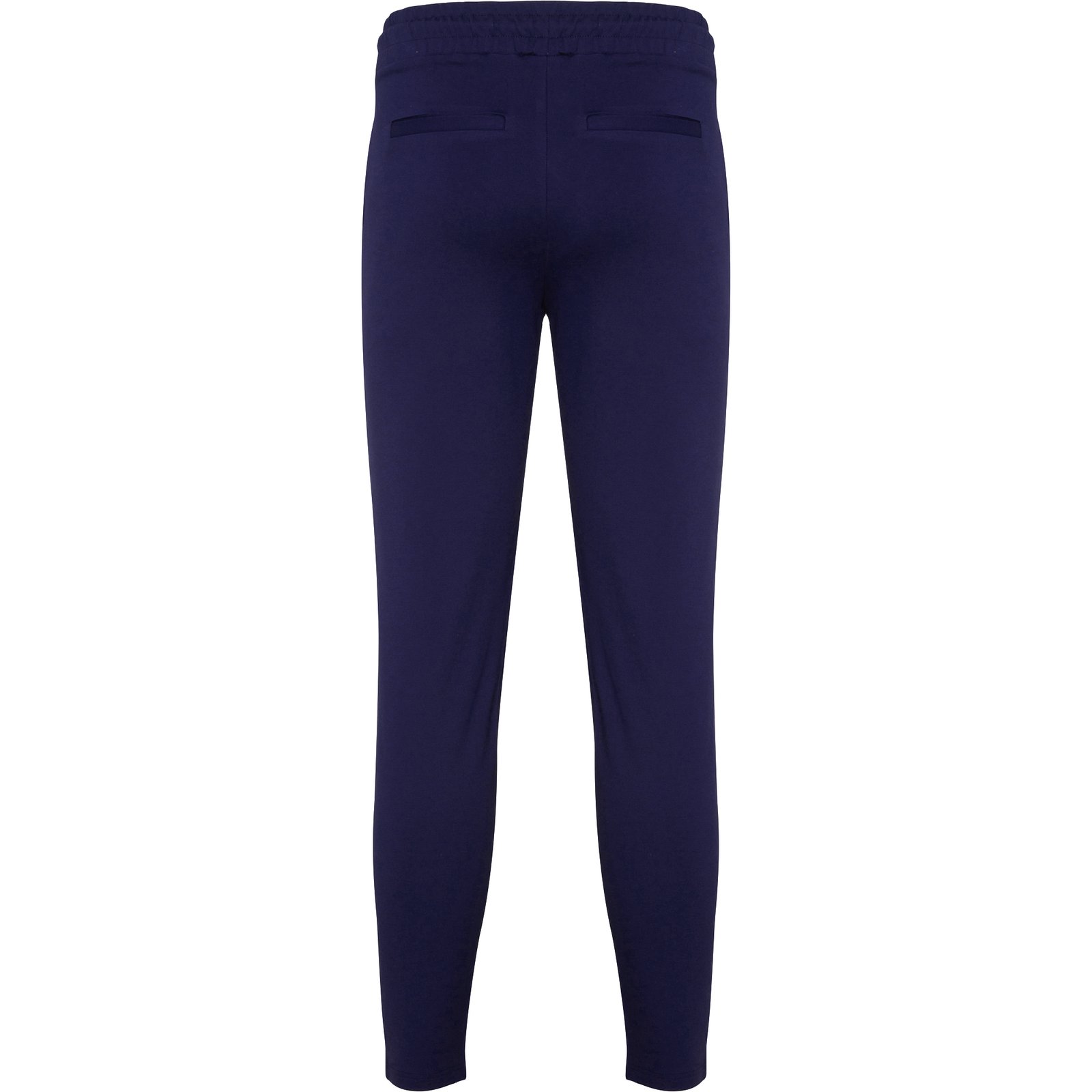 Pantalón en tejido stretch con cintura engomada en la parte trasera y cordón ajustable en la parte delantera con ojales metálicos al tono. Pinzas delanteras. Dos bolsillos laterales. Dos ribetes decorativos en la parte trasera que simulan bolsillos.