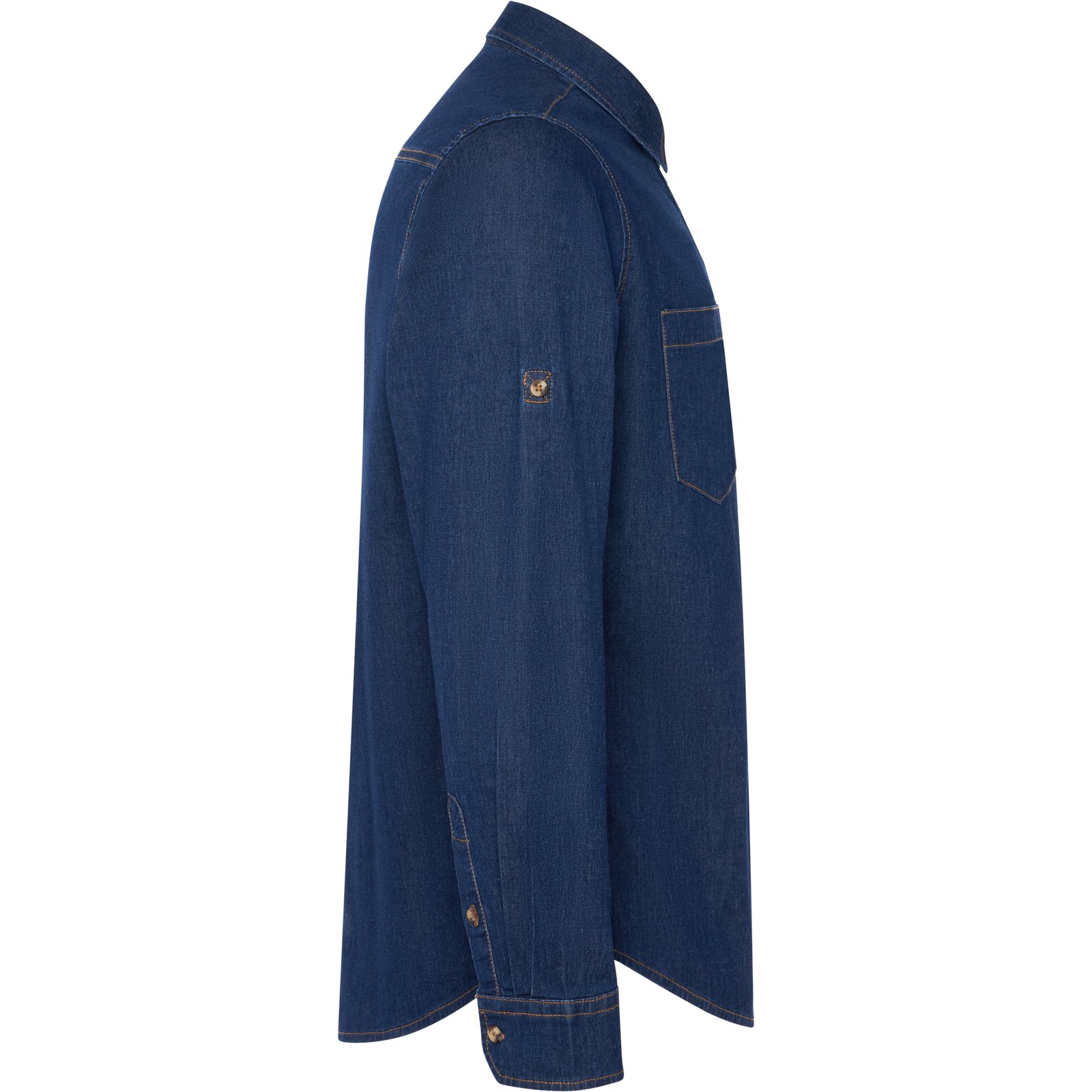 Camisa vaquera manga larga con trabilla ajustable.