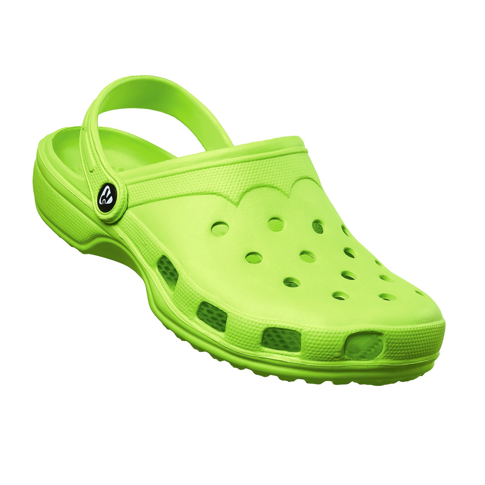 Zueco de máxima comodidad. Agujeros de ventilación y tira de sujeción de doble posición en el talón. Modelo multifuncional, para usar en tiempo libre y también ideal para personas que pasan muchas horas de pie, como trabajadores del sector alimentación, estética…