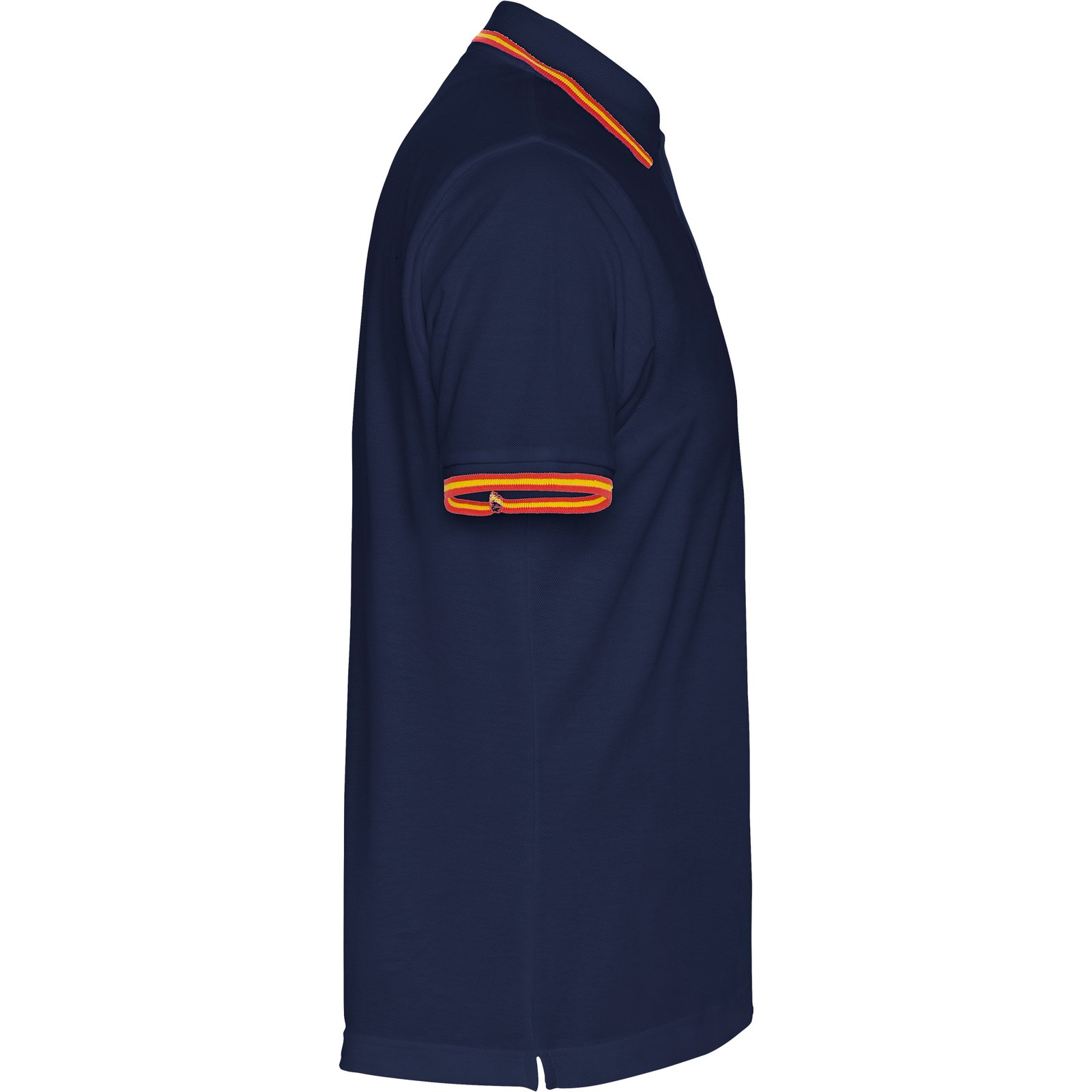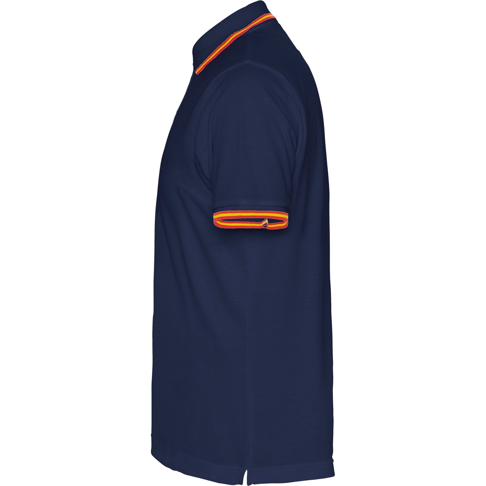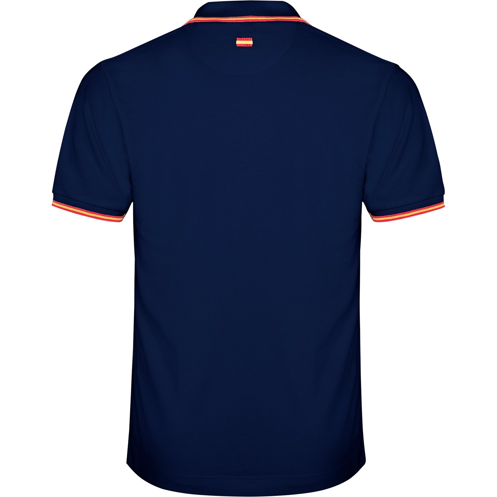 Polo de manga corta con tratamiento antipilling. Punto piqué. Cuello y mangas tejidos 1×1 a contraste de color. Tapeta de 3 botones. Cubrecosturas en cuello del mismo tejido y media luna interior. Detalle bandera bordada en la espalda. Bolsillo opcional. Admite lavado a 60º.