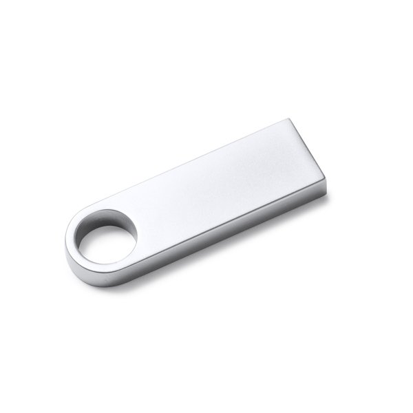 Memoria USB 2.0 metálica de diseño ultra compacto. Disponible con capacidad de 16 GB y 32 GB.
