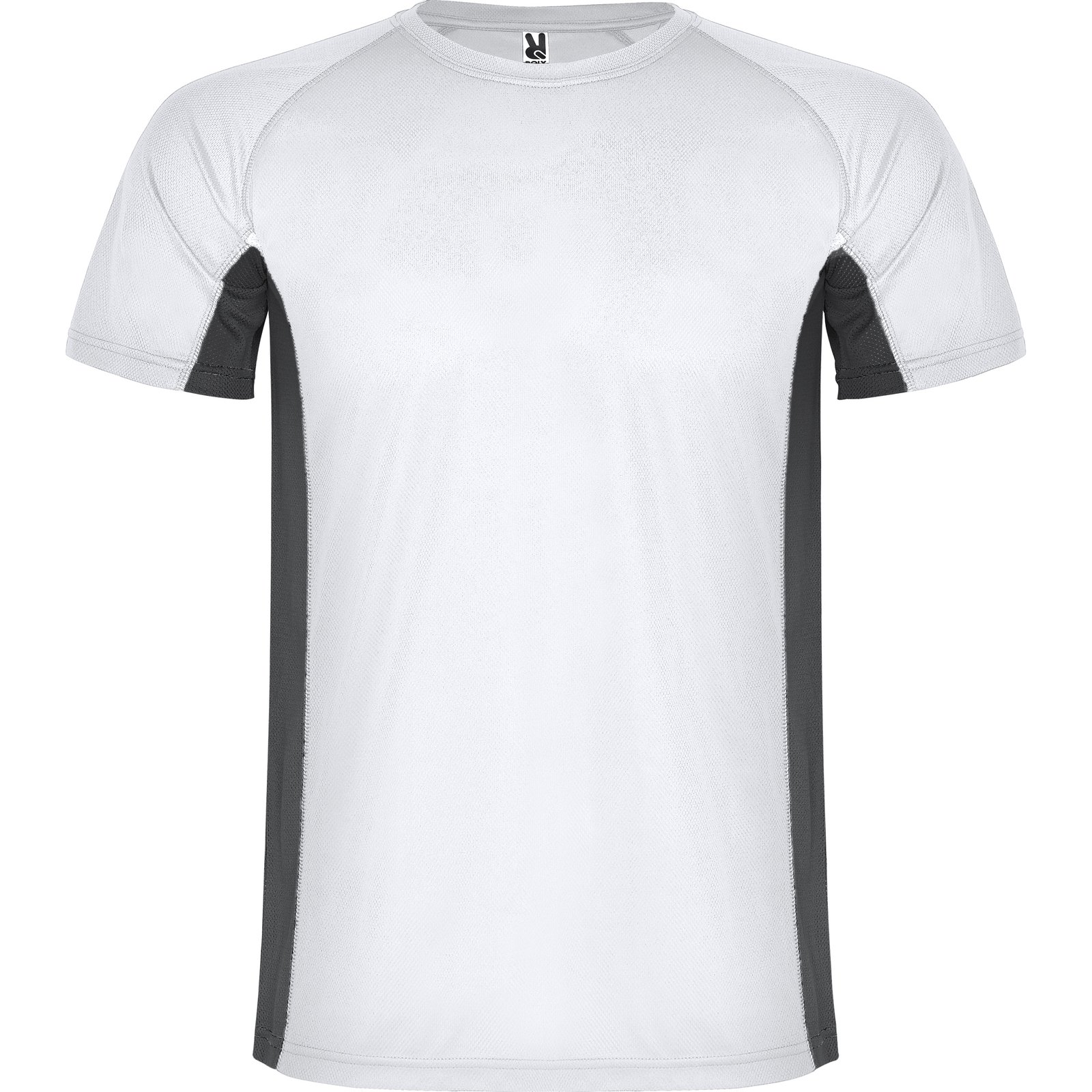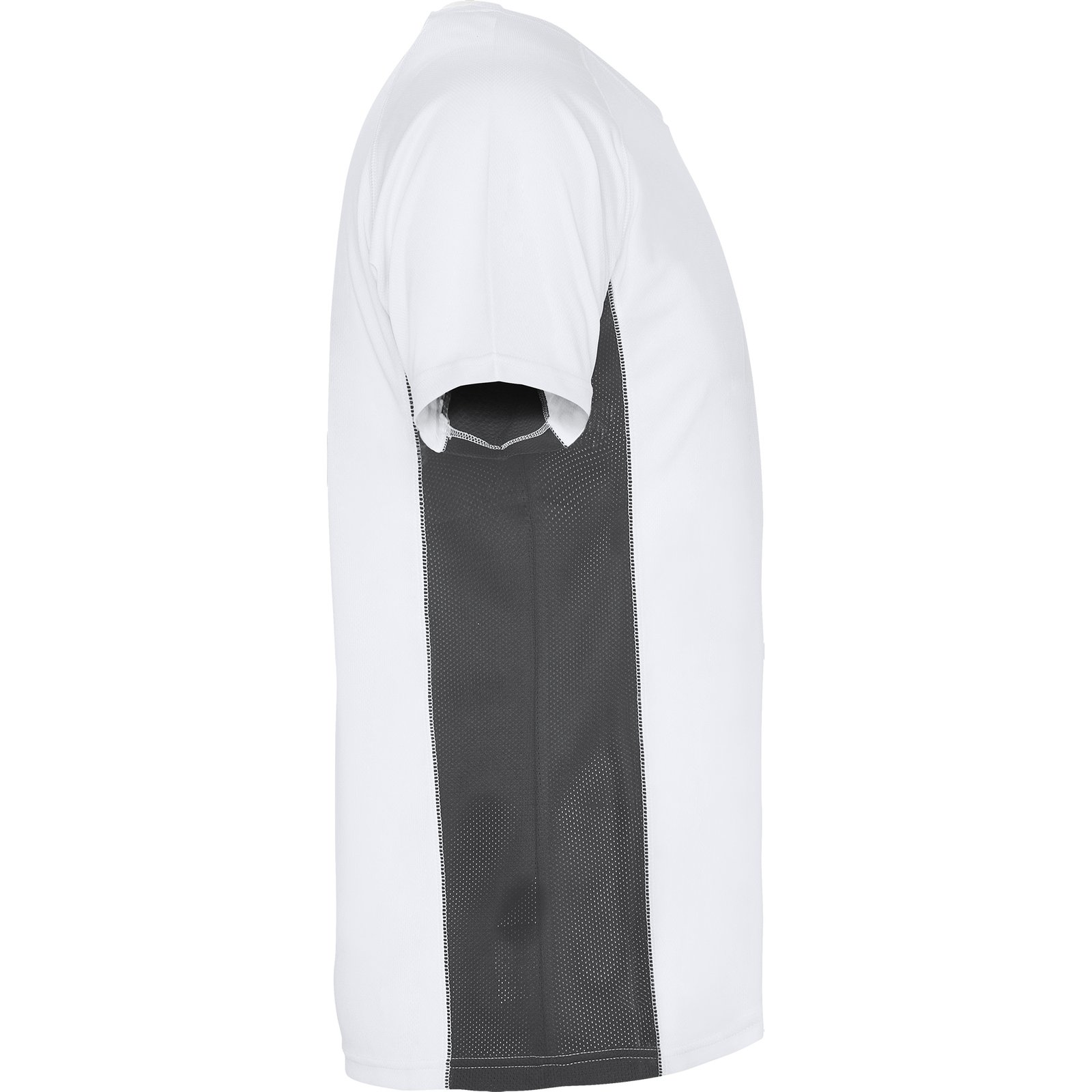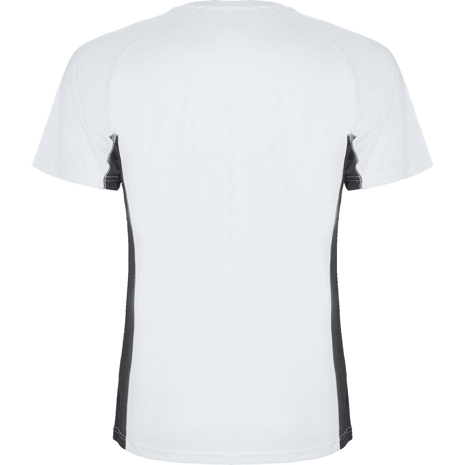 Camiseta técnica manga ranglán transpirable bicolor. Paneles laterales en tejido microperforado. Cuello redondo y cubrecosturas del mismo tejido al tono.