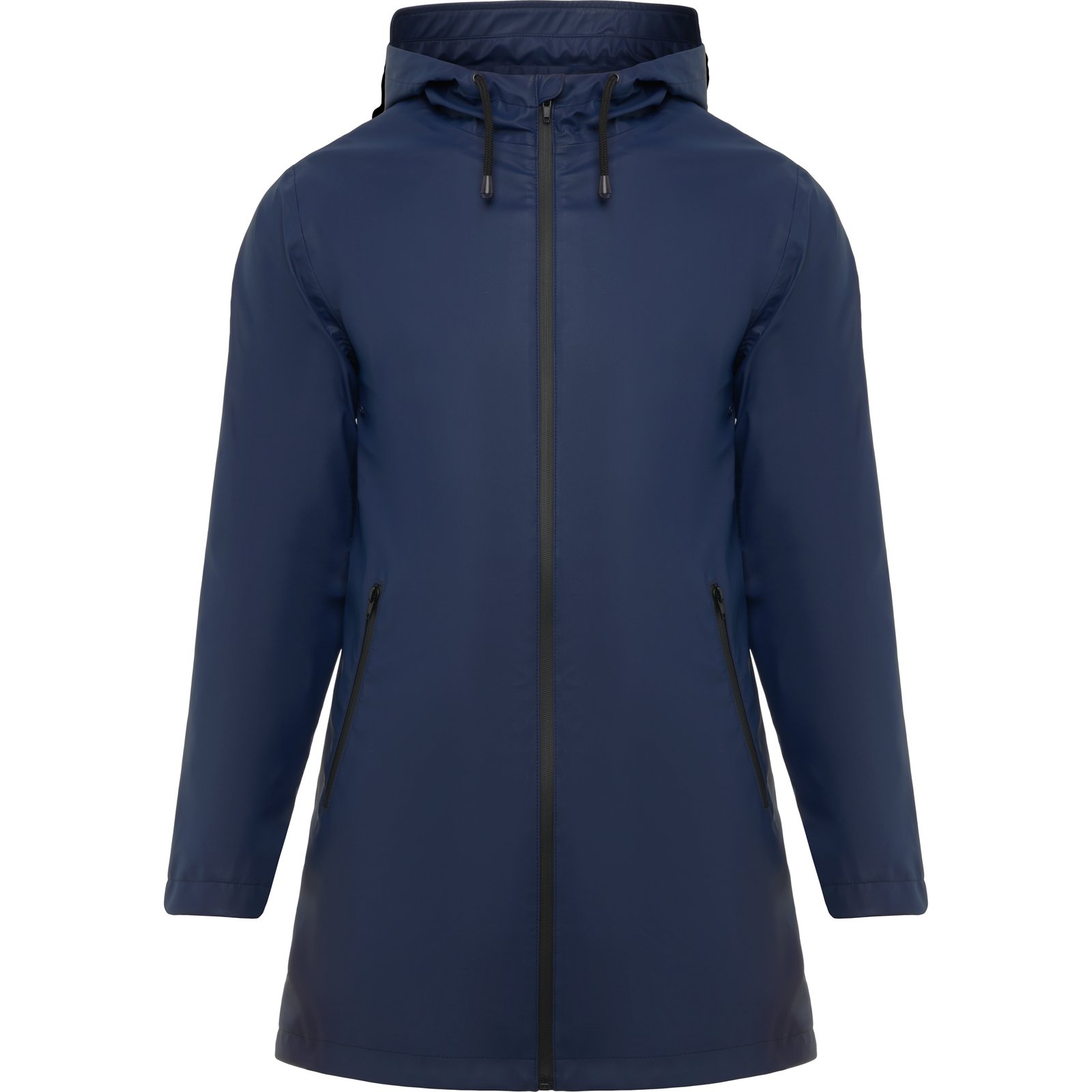 Chubasquero con capucha fija y visera resistente al agua. Ligeramente ajustado en la cintura. Cremallera frontal de doble dirección. Bolsillos laterales y costuras termoselladas. Cordón ajustable en capucha. Apertura trasera. Acceso interior para reprocesos.