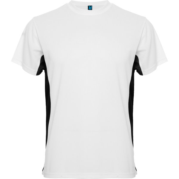 Camiseta técnica de manga corta transpirable. Cuello redondo con cubre costuras a tono. Tejido de fácil secado. Combinación de colores, paneles laterales a contraste.