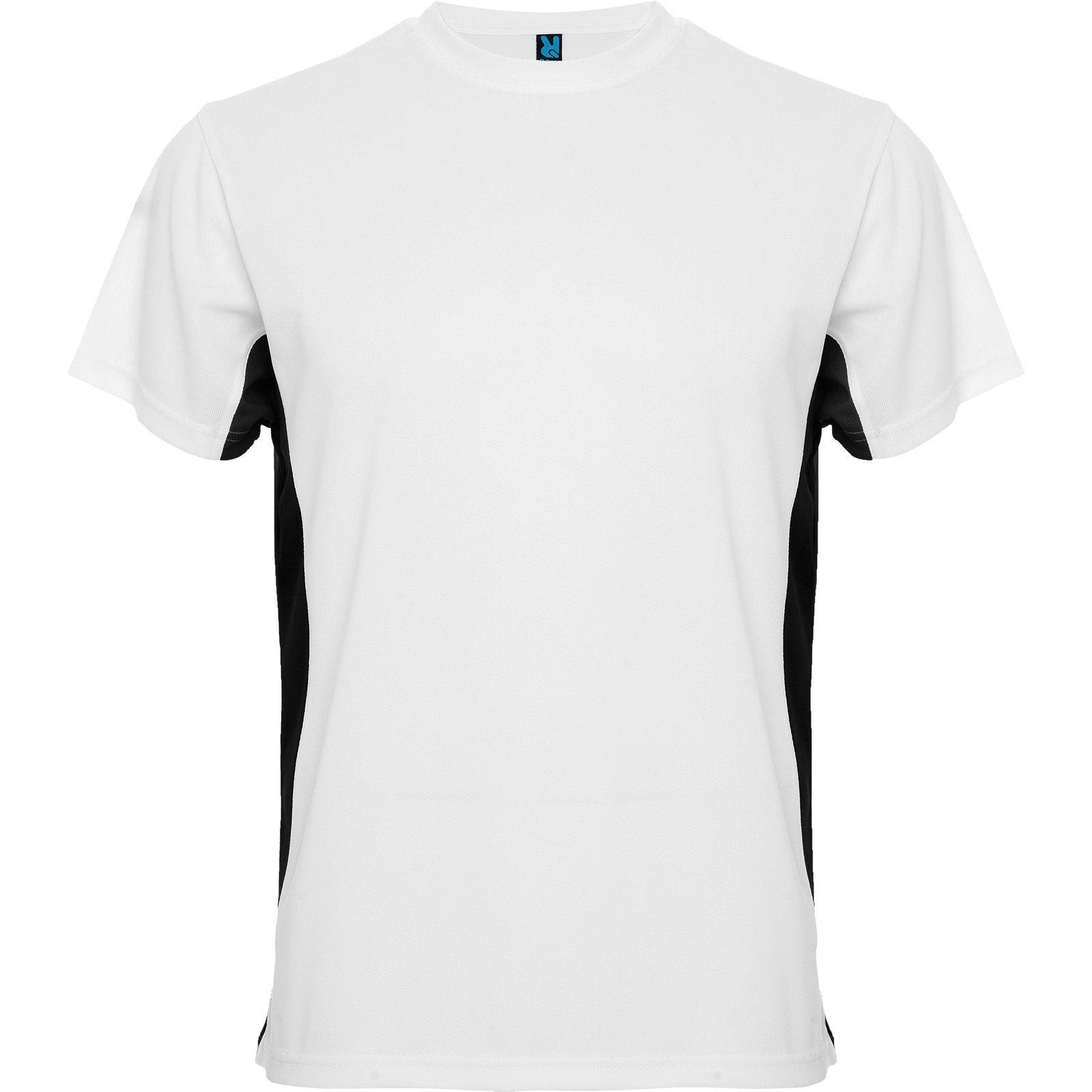 Camiseta técnica de manga corta transpirable. Cuello redondo con cubre costuras a tono. Tejido de fácil secado. Combinación de colores, paneles laterales a contraste.