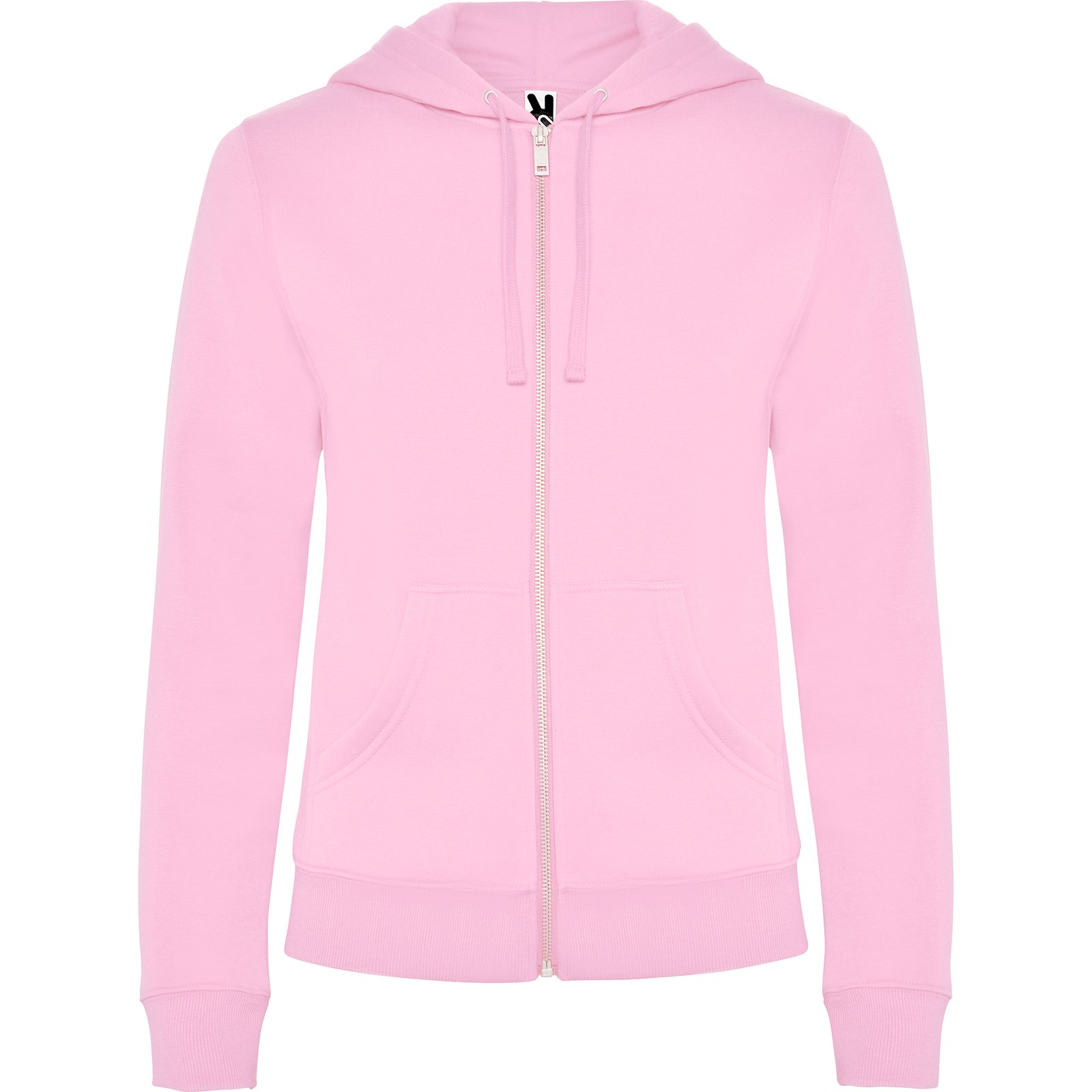 Sudadera entallada en cintura con cremallera frontal y capucha. Cremallera metálica. Bolsillos canguro, puños y cinturilla en canalé 2×1 con elastano. Cordón plano al tono en capucha. Cubrecosturas del mismo tejido.