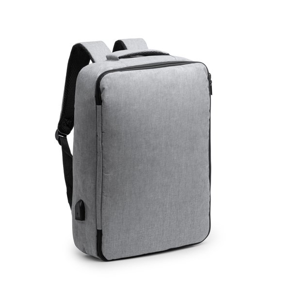 Mochila portadocumentos realizada en poliéster reciclado RPET de 300D con diseño vigoré combina estilo, funcionalidad y sostenibilidad. Está fabricada con materiales reciclados, y cuenta con asas y la espalda acolchados. El compartimento principal se encuentra acolchado para llevar tu portátil de 13″ o Tablet. Además, cuenta con un práctico puerto USB para conectar tu Powerbank (no incluido), permitiéndote cargar tus dispositivos electrónicos sobre la marcha.Cuenta con cinta para trolley.